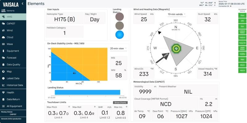 The Helideck Monitoring System (HMS) continuously measures weather, motion, and environmental parameters to ensure safe helicopter operations on offshore installations.